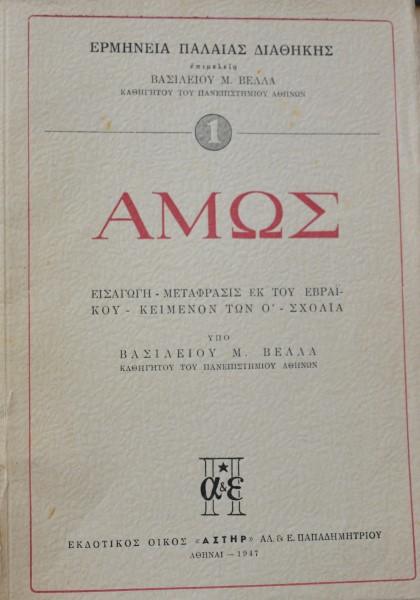 Ερμηνεία της Παλαιάς Διαθήκης, ΑΜΩΣ, Εισαγωγή, μετάφραση εκ του εβραϊκού, κείμενον των Ο΄, Σχόλια Βασίλειος Βέλλας