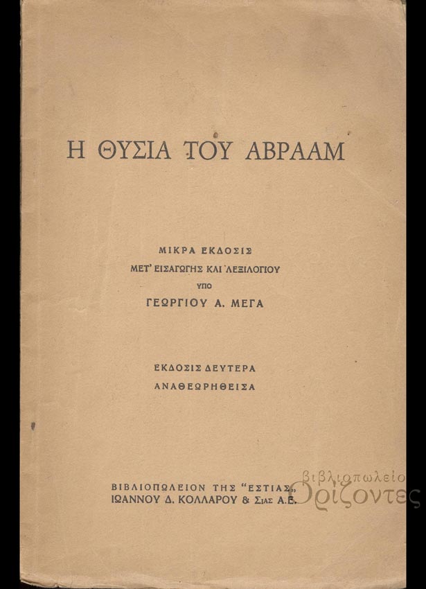 Μέγας, Γεώργιος (επιμέλεια) : Η θυσία του Αβραάμ (Εστία, έκδοσις δευτέρα αναθεωρηθείσα)