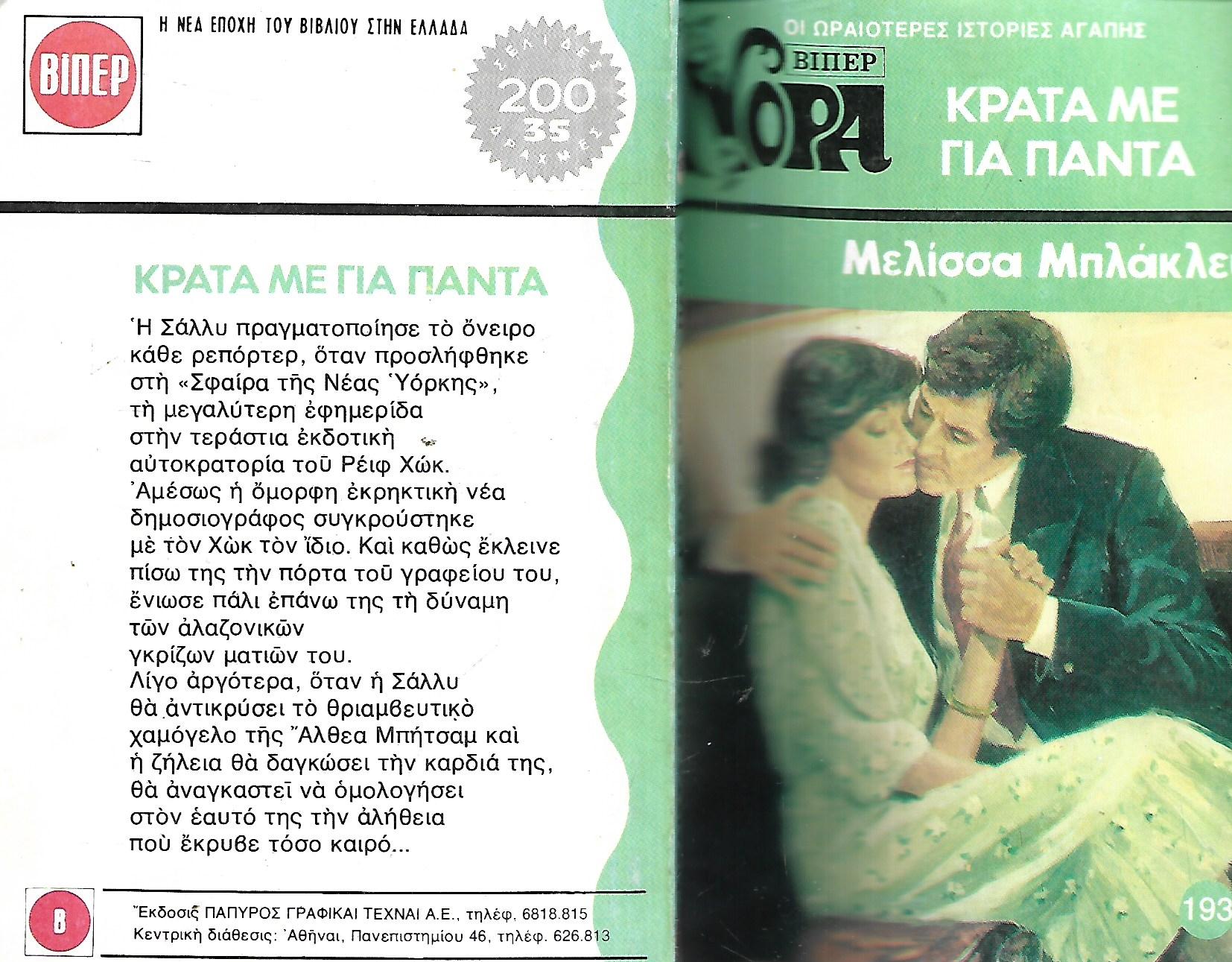 ΚΡΑΤΑ ΜΕ ΓΙΑ ΠΑΝΤΑ Εκτύπωση 2,00 € Διαθέσιμο SKU: Ν193 ΚΡΑΤΑ ΜΕ ΓΙΑ ΠΑΝΤΑ Προσθήκη στα Αγαπημένα Σύγκριση Πίσω στο: Βίπερ Νόρα Στοιχειωμένη βουνοπλαγιά Βίπερ Νόρα Νο 116 Τζήν Σ. Μακλέοντ Ντελικάτη μου αγάπη με μεταφορικά Παραλαβή από το κατάστημα μας για 0,00 € Περιγραφή ΣΥΓΡΑΦΕΑΣ ΜΕΛΙΣΣΑ ΜΠΛΑΚΛΕΥ