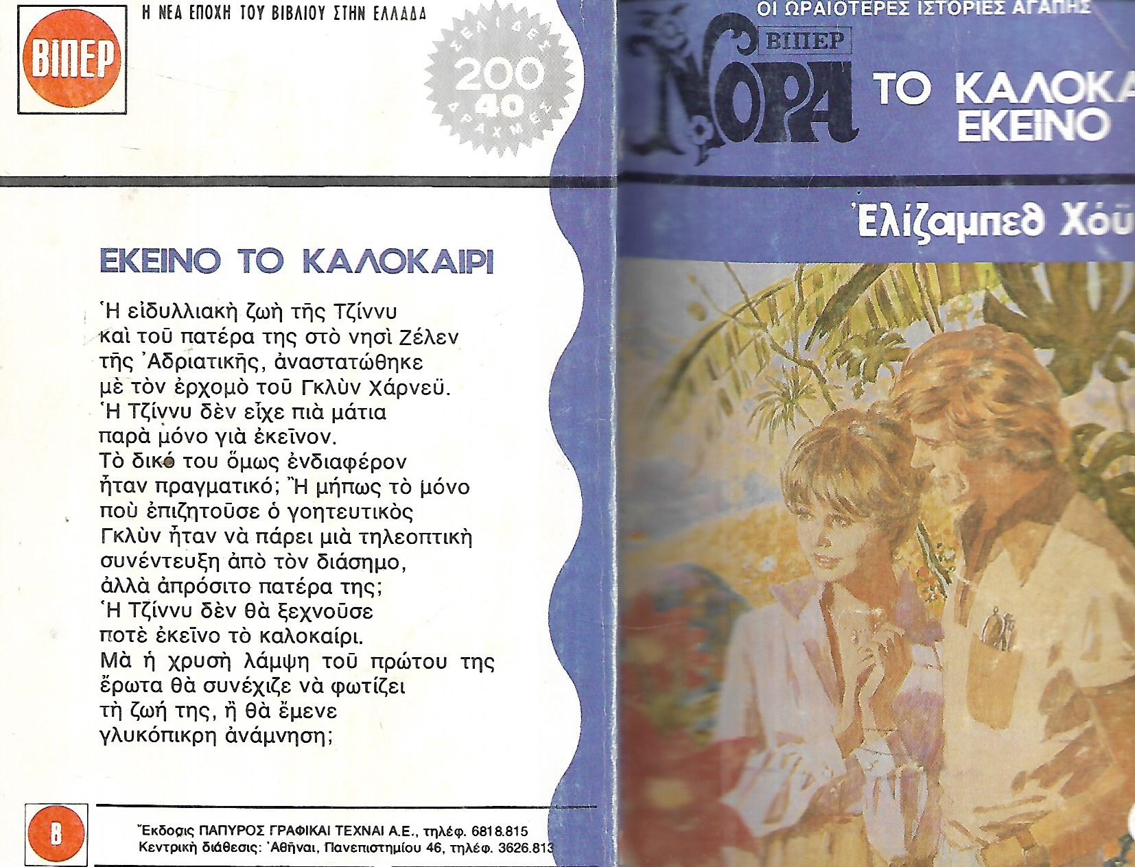 ΤΟ ΚΑΛΟΚΑΙΡΙ ΕΚΕΙΝΟ Εκτύπωση 2,00 € Διαθέσιμο Ν263 Προσθήκη στα Αγαπημένα Σύγκριση Πίσω στο: Βίπερ Νόρα Στοιχειωμένη βουνοπλαγιά Βίπερ Νόρα Νο 116 Τζήν Σ. Μακλέοντ Ντελικάτη μου αγάπη με μεταφορικά Παραλαβή από το κατάστημα μας για 0,00 € Περιγραφή ΣΥΓΡΑΦΕΑΣ ΕΛΙΖΑΜΠΕΘ ΧΟΥ