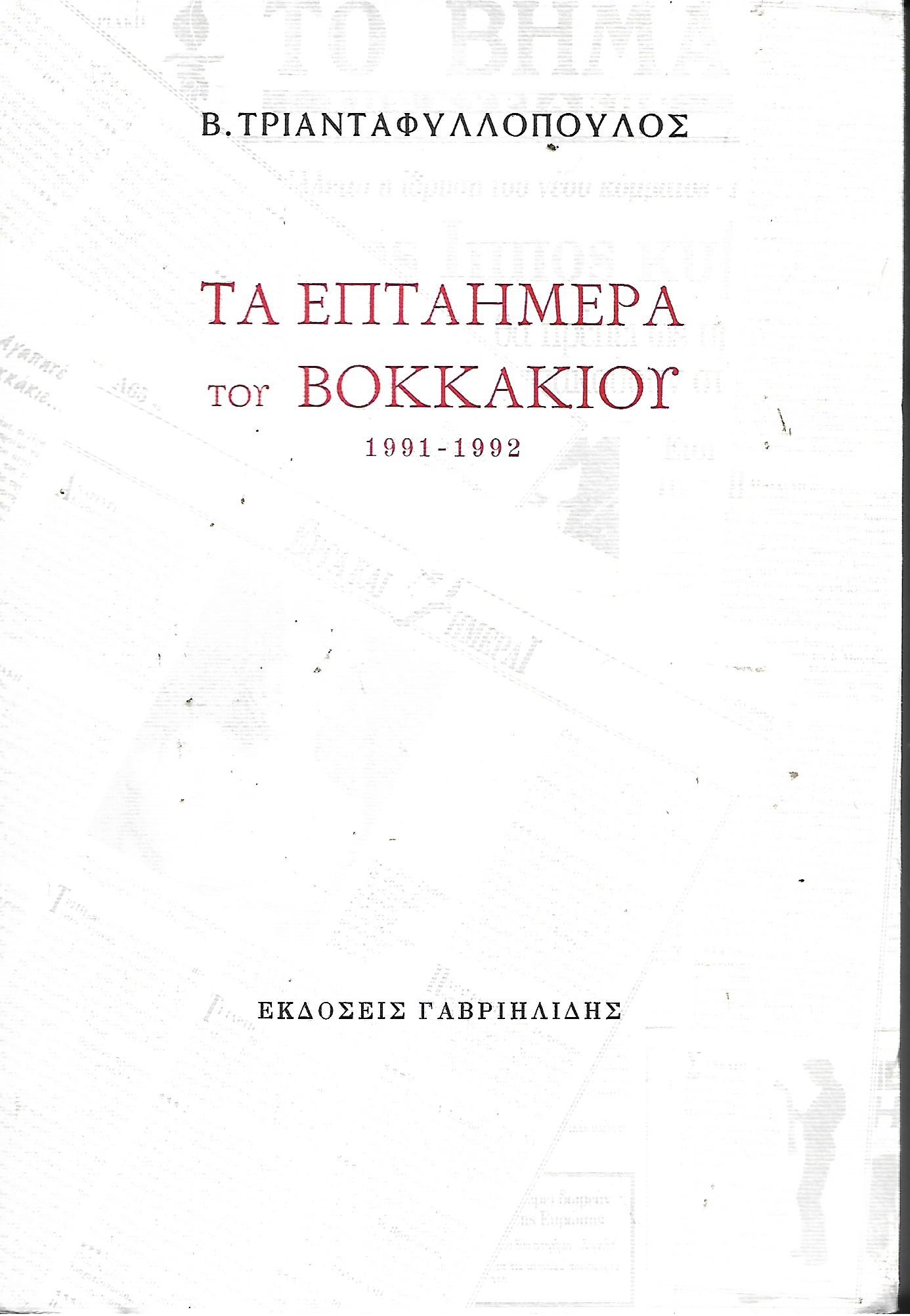 ΤΑ ΕΠΤΑΗΜΕΡΑ ΤΟΥ ΒΟΚΚΑΚΙΟΥ 1991-1992 ΤΡΙΑΝΤΑΦΥΛΛΟΠΟΥΛΟΣ ΒΟΚΚΑΚΙΟΣ, ημερολόγιο