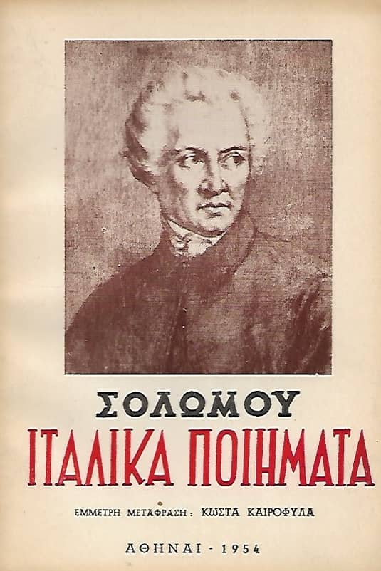 Σολωμού Ιταλικά ποιήματα Έμμετρη μετάφραση Κώστα Καιροφύλα – Πρόλογος: Σπύρος Μελάς – Πρώτη έκδοση