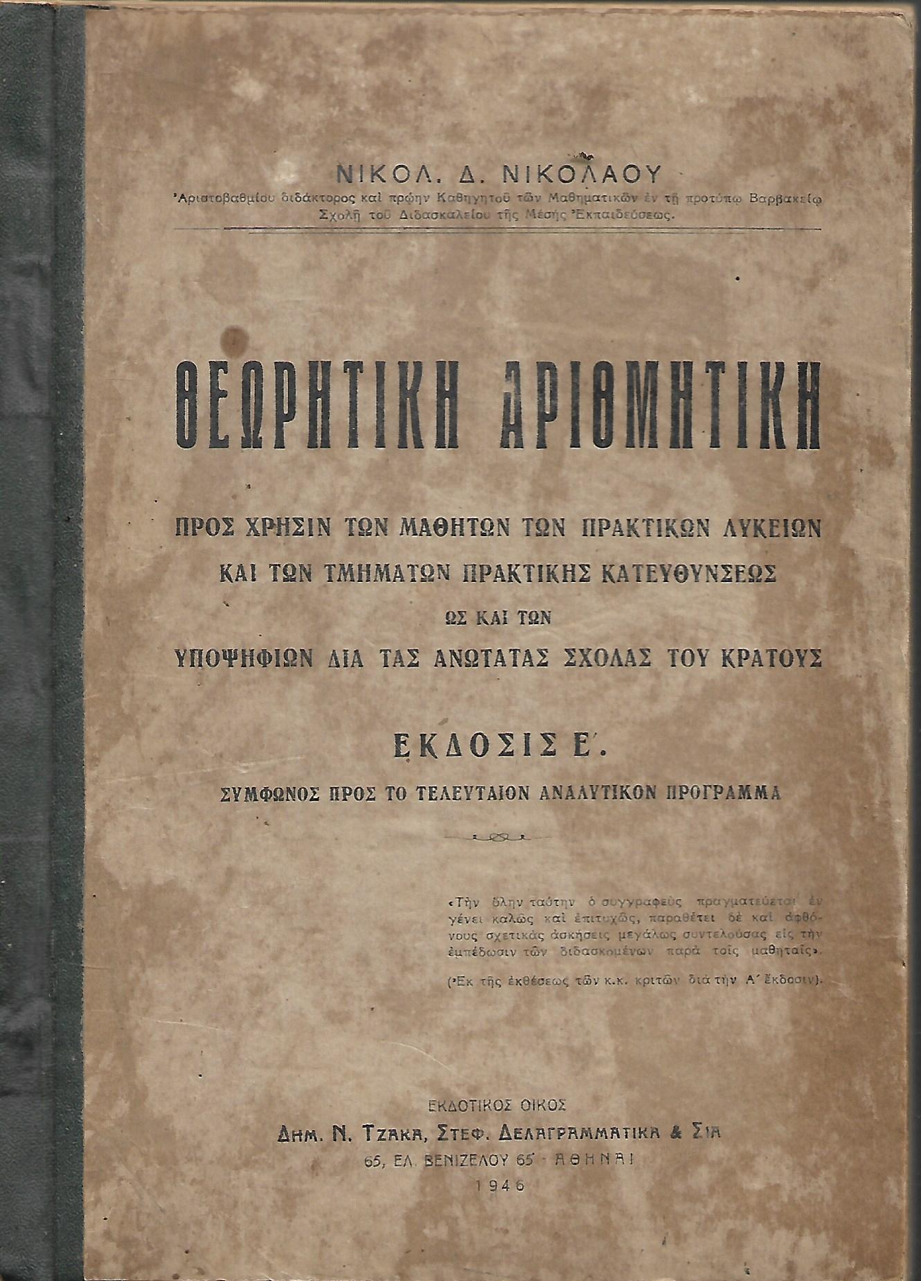 Προς χρήσιν των μαθημάτων των πρακτικών λυκείων και των τμημάτων πρακτικής κατεύθυνσεως ως και των υποψηφίων δια τας ανώτατας σχολάς του κράτους.