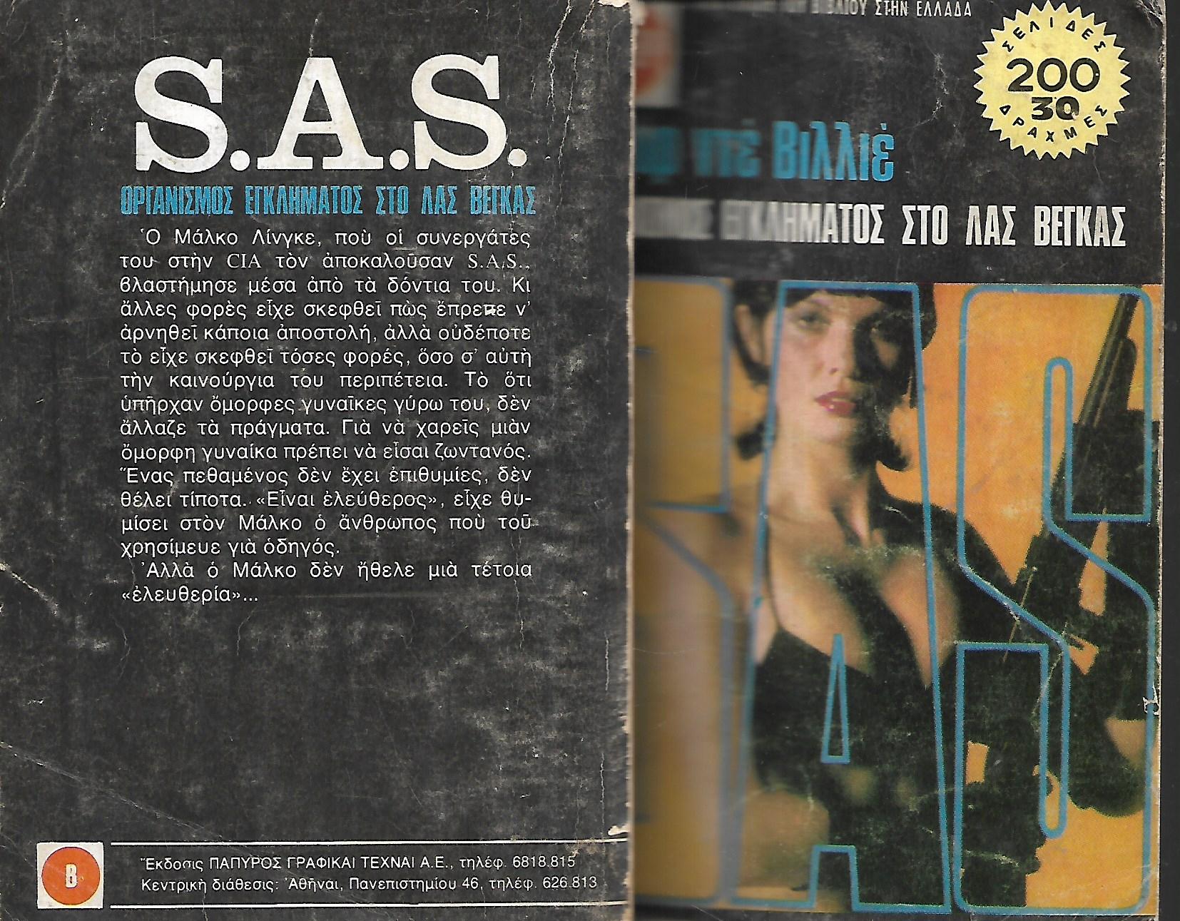 Ο Μάλκο, που οι συνεργάτες του στην CIA αποκαλούσαν SAS, βλαστήμησε μέσα από τα δόντια του. Κι άλλες φορές είχε σκεφτεί ότι έπρεπε να αρνηθεί κάποια αποστολή, αλλά ουδέποτε το είχε σκεφθεί τόσες φορές, όσο σ' αυτή την καινούρια περιπέτεια. Το ότι υπήρχαν όμορφες γυναίκες γύρω του, δεν άλλαζε τα πράγματα. Για να χαρείς μια όμορφη γυναίκα πρέπει να είσαι ζωντανός...